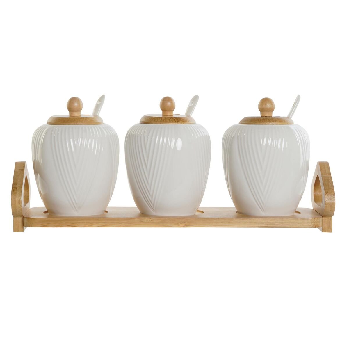 Cukraus dubuo DKD Home Decor Balta Natūralus Bambukas Porcelianas 31 x 9 x 7 cm 4 Dalys