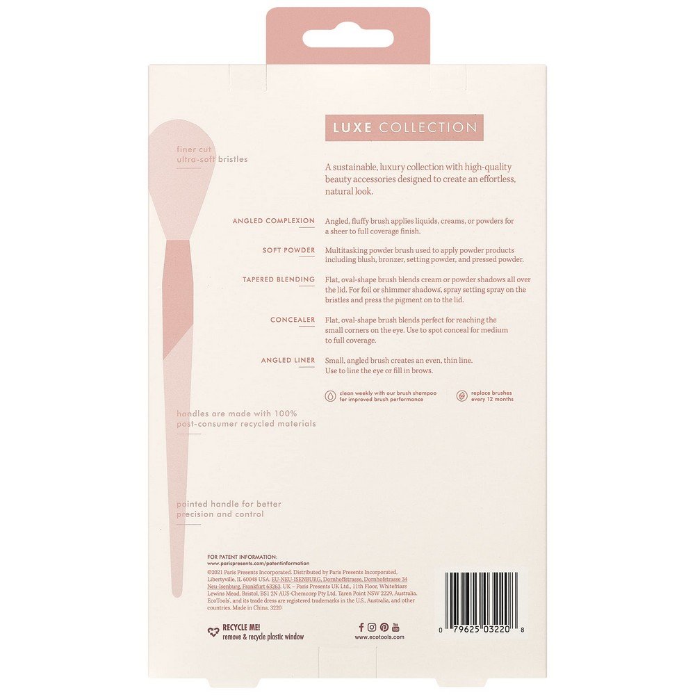 Dvigubo įsiskverbimo diržai Ecotools Luxe Natural Elegance (5 pcs) yra tai, ko tau reikia, maksimaliai padidinti savo žavesiui! Išbandyk 100% originalių produktų Ecotools kokybę ir leisk geriausiems profesionalams atskleisti tavo grožį.